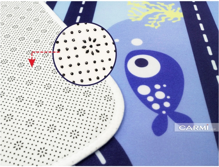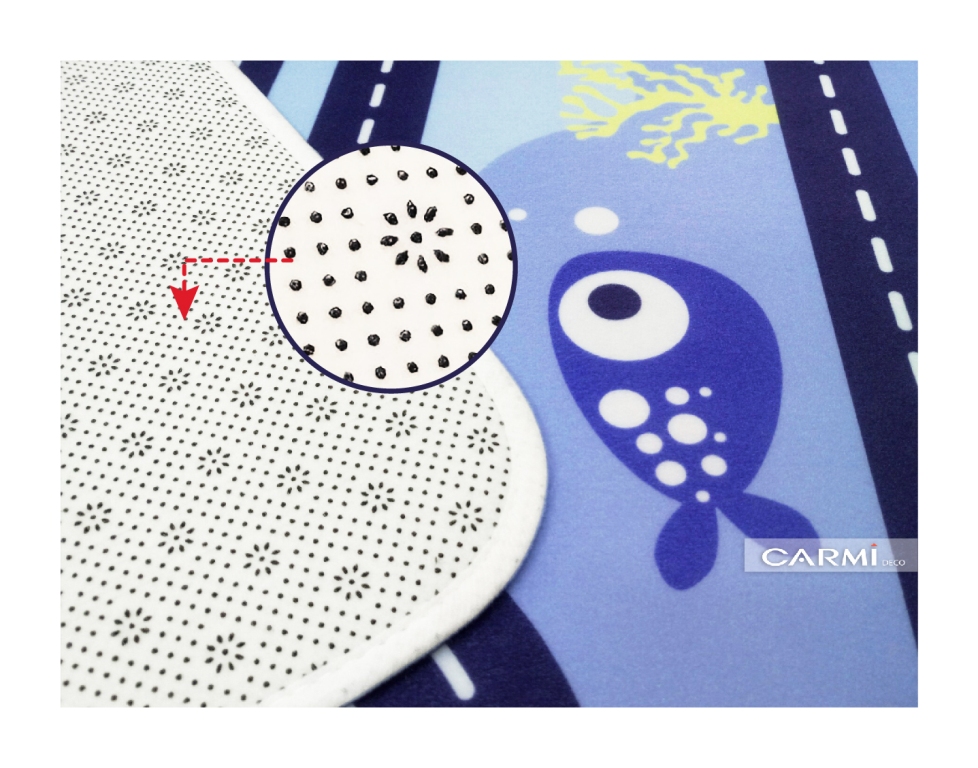 Ingredient: 100%polyester backside laminating with Sponge 4mm+Nonwvent coating by PVC Dot 400g - Non Slip