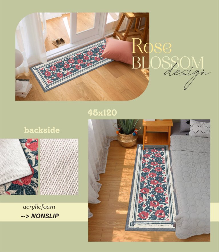 THẢM BỘ COTTON IN 45*65/45*120 ROSE BLOSSOM |